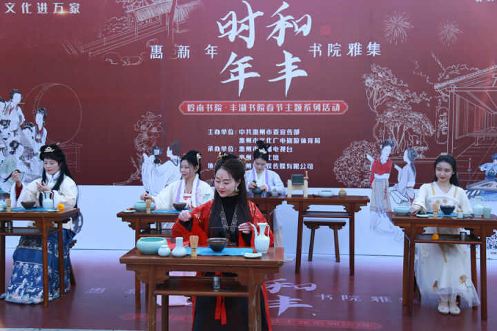 嶺南書(shū)院·豐湖書(shū)院春節(jié)主題系列活動(dòng)中的“宋式點(diǎn)茶”。