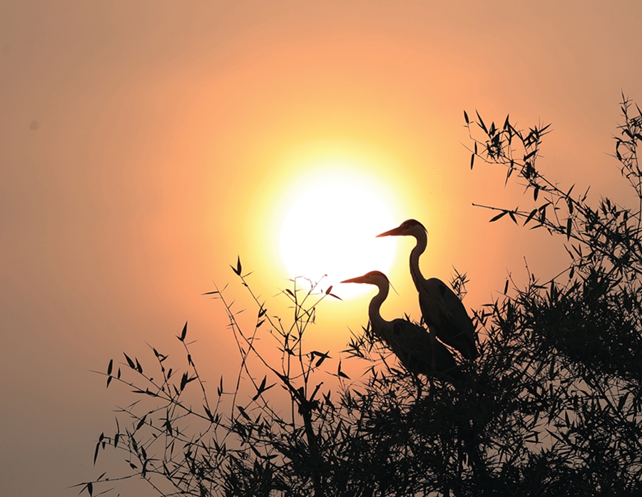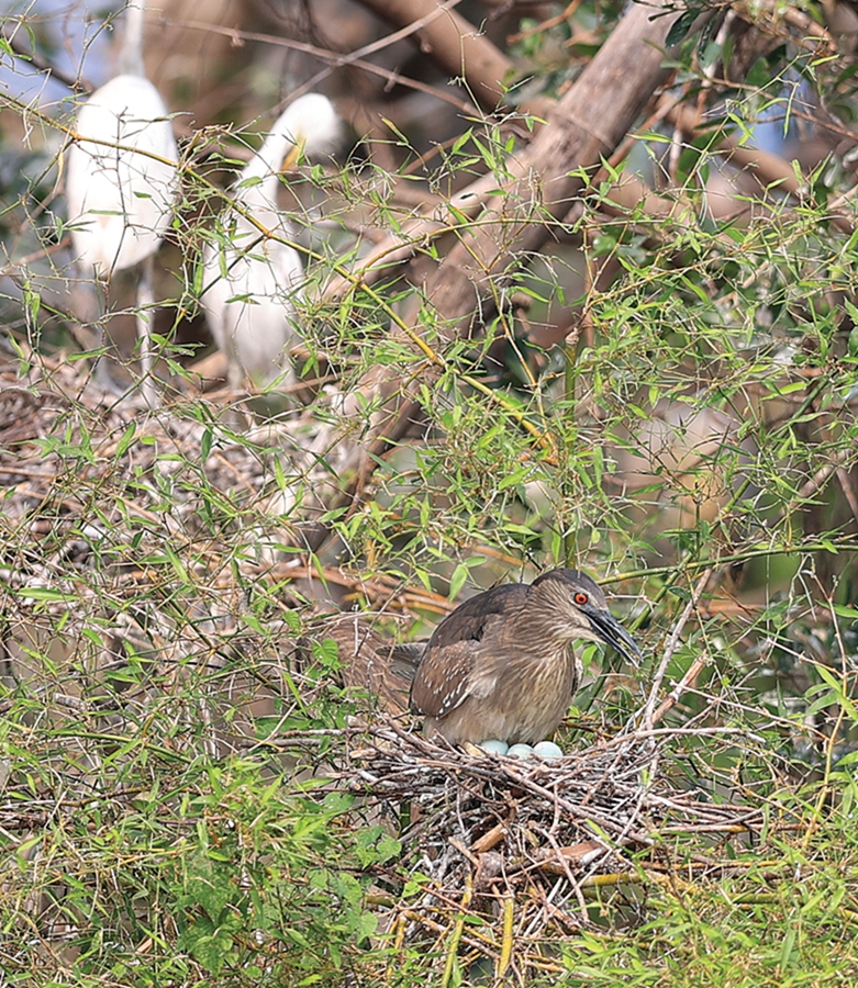 池鷺夫婦共筑愛巢。