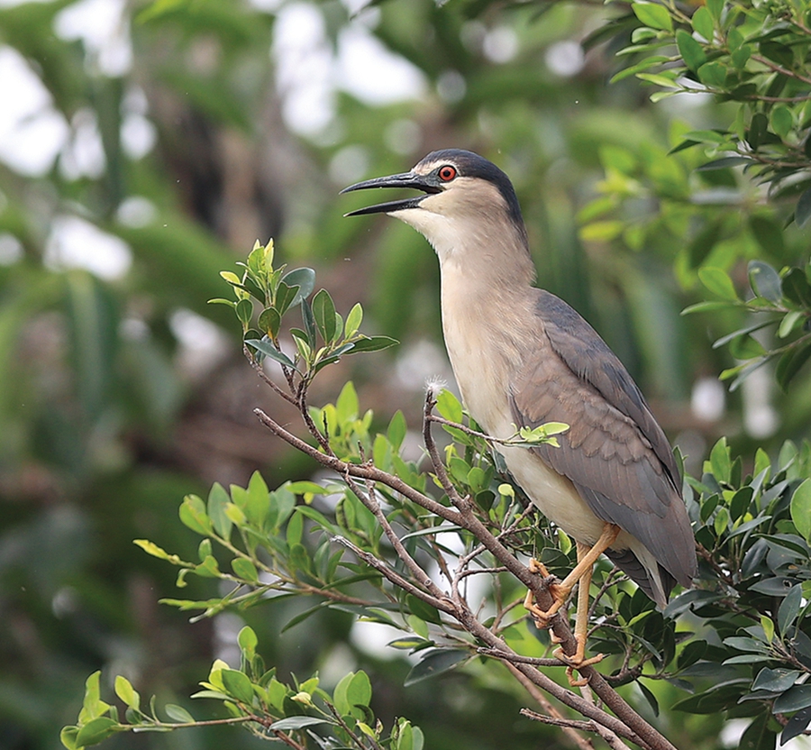 夜鷺在枝間歡歌。