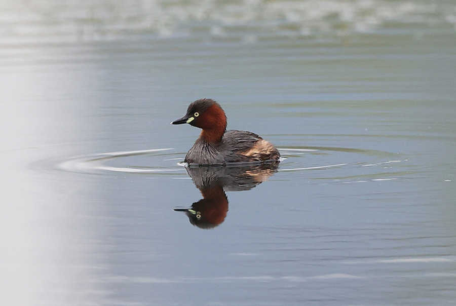 鷿鷈在水里悠游。