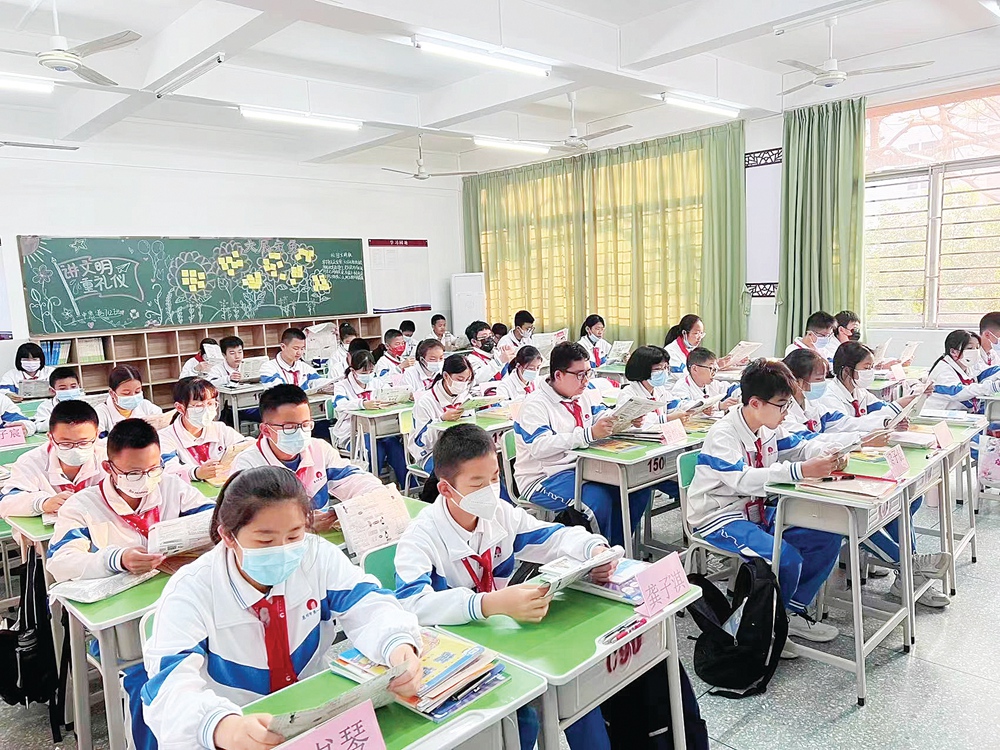為實現(xiàn)潛移默化、潤物無聲的效果,學校不斷豐富學習載體,通過評選“文明班級”“三好學生”“優(yōu)秀班干部”等稱號,使學生學有榜樣,做有標桿,促使學生形成良好思想品德;注重學生日常習慣的養(yǎng)成,以培育社會主義核心價值觀為主線,以愛國、責任、誠信、樂學、合作為主要內容,培養(yǎng)“文明、學習、衛(wèi)生、安全、生活、體藝”六大習慣,利用紀律教育月、專題講座、每周的年級例會、每周主題班會、每周學生檢查、問題反饋等形式,及時糾正學生不良行為;通過開展“憲法晨讀”“國旗下講話”主題教育等系列主題教育實踐活動,并將偉大建黨精神和抗疫精神、科學家精神、載人航天精神及生動鮮活的實踐成就引入課堂,以提升學生的思想品德素養(yǎng)。