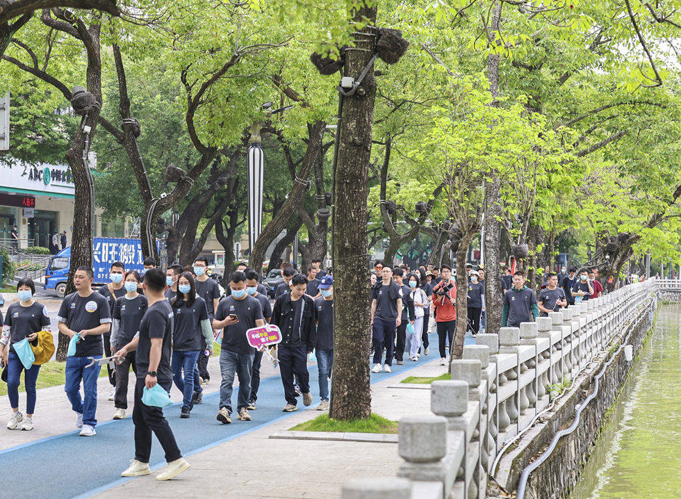 “全民反詐”宣傳公益撿跑隊伍在市區(qū)西湖周邊進行撿跑和反詐宣傳活動。