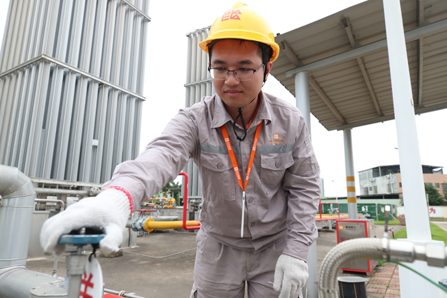 走進(jìn)三棟多功能氣化站,各種設(shè)施設(shè)備齊全,封明浩正和同事們一起加班加點(diǎn)對(duì)設(shè)備進(jìn)行最后調(diào)試,確保正式投產(chǎn)后可達(dá)到安全穩(wěn)定供氣要求。