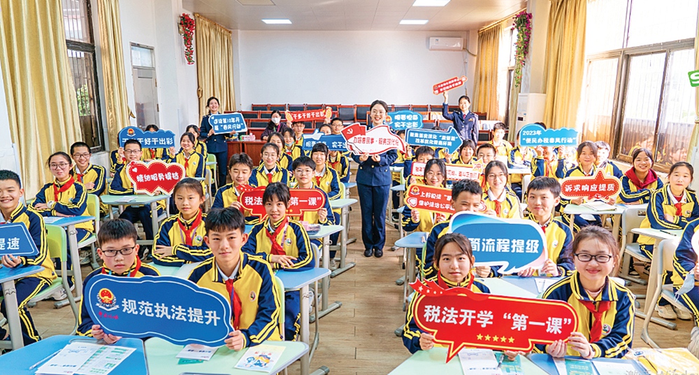 惠城區(qū)稅務局稅務人員走進小金口中學開展“稅法開學第一課”活動。