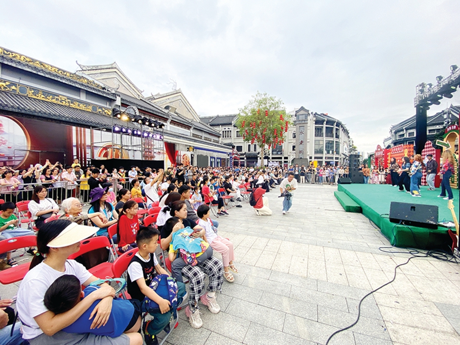 游客在市區(qū)水東街觀看“歡迎回到8090年代”綜合展演。惠州日報記者湯渝杭 攝