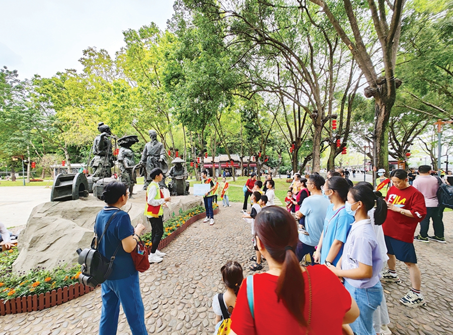 青少年志愿講解員為游客提供講解服務(wù)。 惠州日?qǐng)?bào)記者王建橋 攝