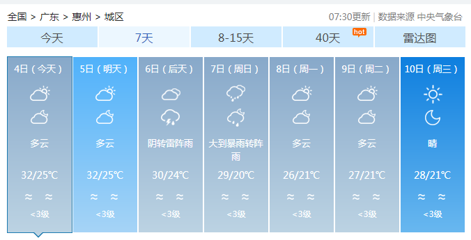 惠州具體預(yù)報(bào):