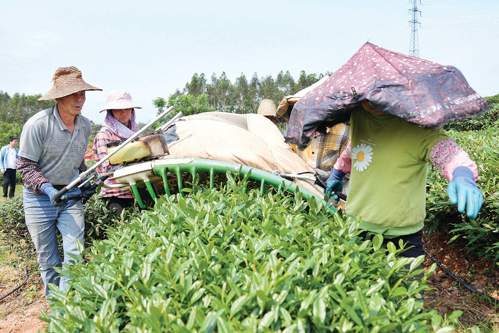 惠州市花海茶園(巖茶)的工人使用機械采摘茶葉。惠州日報記者楊建業(yè) 攝