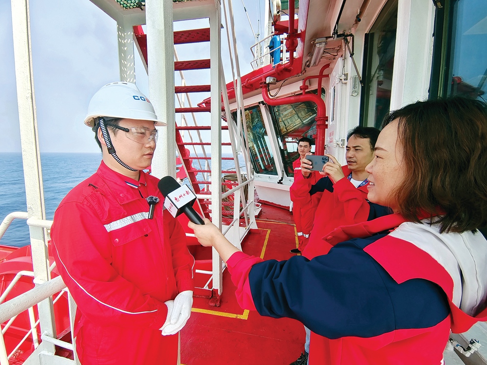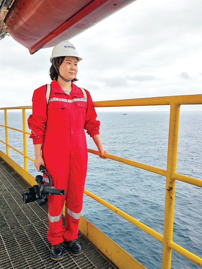 我是惠州日報社記者匡湘鄂。這次“惠報記者探秘中國南海惠州油田”全媒體采訪活動,惠州日報社派出的4名記者中,我是唯一一名女性,因此,我為這次報道活動創(chuàng)下了兩個第一:第一個登上中海油服旗艦船“海洋石油681”采訪的女記者,第一個登上“國瑞”鉆井平臺采訪的女記者。在我17年的記者生涯里,這是彌足珍貴的一次采訪體驗。