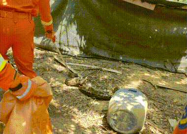 消防員立即與區(qū)公安分局、區(qū)自然資源局相關(guān)工作人員緊密配合:由公安部門維護(hù)現(xiàn)場秩序,消防員利用捕蛇器進(jìn)行抓捕,區(qū)自然資源局接收,共同完成抓捕任務(wù)。