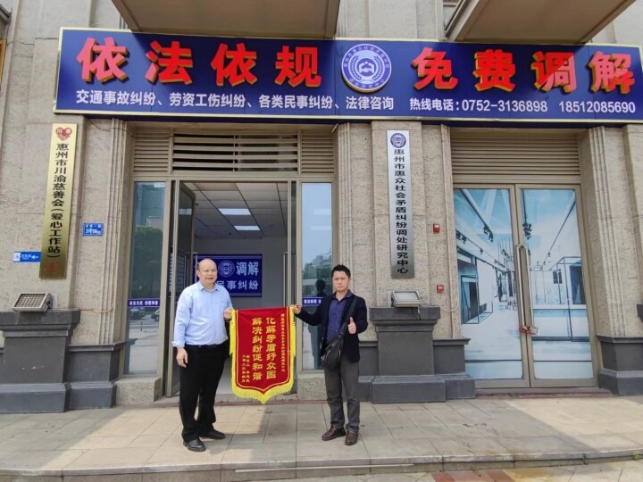 4月12日,惠眾調(diào)處研究中心收到一面印有“化解矛盾紓眾困,解決糾紛促和諧”的錦旗,贈(zèng)送錦旗的正是李志民。