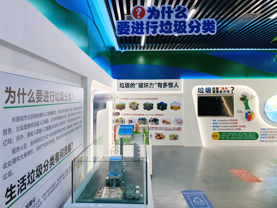 惠州市生活垃圾分類科普館是在惠州市城市生活垃圾分類工作領(lǐng)導(dǎo)小組辦公室指導(dǎo)下,由惠州市市容環(huán)境衛(wèi)生事務(wù)中心負(fù)責(zé)建設(shè)的現(xiàn)代化、沉浸式體驗的垃圾分類知識科普基地。該科普館位于惠城區(qū)青少年宮,建設(shè)面積約500平方米,是我市首個以垃圾分類為主題的科普教育場所,分為五大功能區(qū),按照前言、為什么要進(jìn)行垃圾分類、如何進(jìn)行垃圾分類、垃圾分類“惠州實踐”、趣味科技互動等進(jìn)行布局,開展深入淺出的科普教育,集科普性、互動性、趣味性和科技感于一體。科普館運用圖文展板、新媒體播放、VR互動等豐富多樣的形式,讓市民沉浸式了解垃圾造成的危害,掌握垃圾分類知識,學(xué)習(xí)生活垃圾分類小技巧。此外,科普館還展出了惠州中小學(xué)生利用廢舊材料制作出的精美作品。