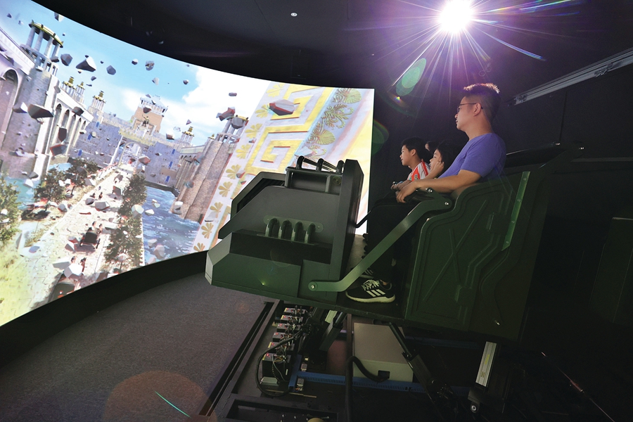 市民在裸眼3D飛行影院體驗(yàn)。惠州日?qǐng)?bào)記者王建橋 攝