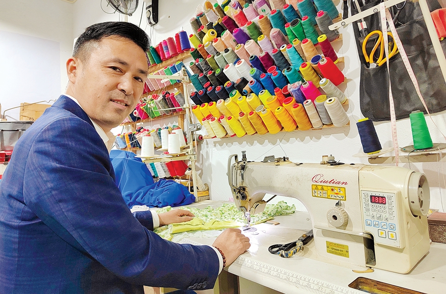 漸漸長大后,黃開旋意識到,不能干農(nóng)活的他,要生存必須學會一門手藝。1996年,19歲的黃開旋開始跟鎮(zhèn)上一名裁縫師傅學習,由此走上了裁縫之路。2008年,結婚后的黃開旋自己創(chuàng)業(yè),開了個檔口,靠裁縫技藝養(yǎng)活一家人和支付醫(yī)療費。