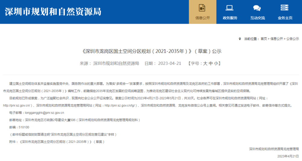 現(xiàn)規(guī)劃草案面向社會(huì)公眾公開征詢意見。草案公示時(shí)間為2023年4月21日至2023年5月21日,共30天。