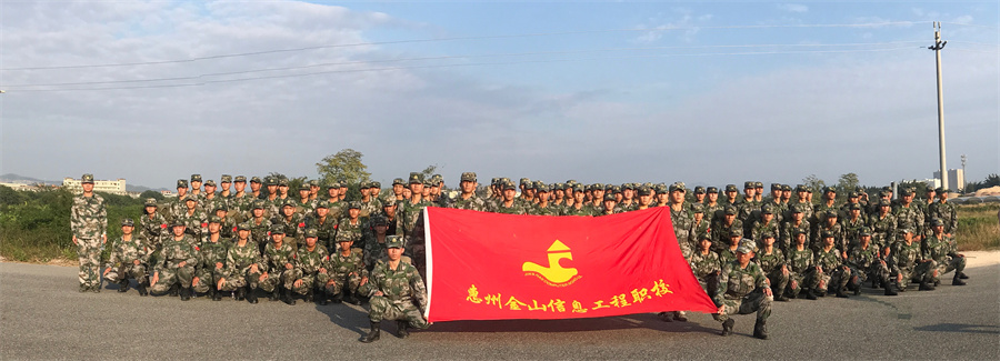 惠州市金山信息工程職業(yè)技術(shù)學校國防教育特色專業(yè)學生合影。