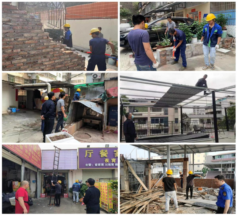 對江南街道范圍內(nèi)侵占城市公共空間的違章搭建物進(jìn)行拆除。