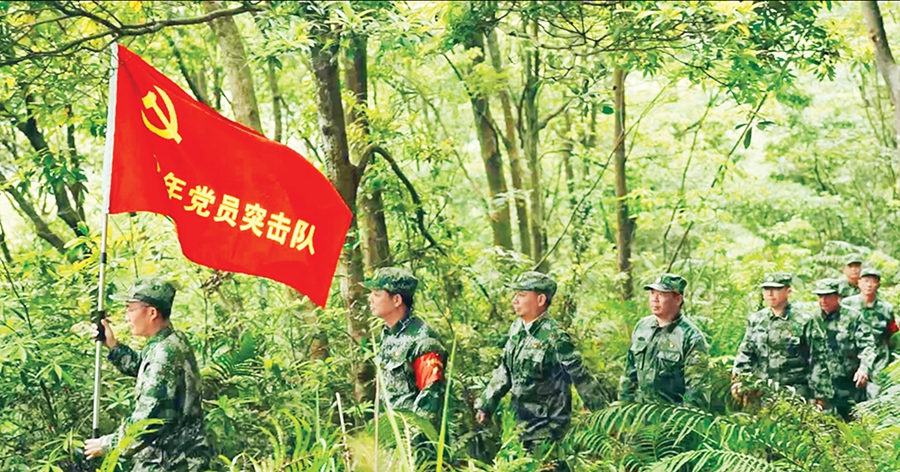 在惠州10個(gè)市屬國(guó)有林場(chǎng),黨旗始終在一線高高飄揚(yáng)。圖為羅浮山林場(chǎng)黨員護(hù)林員在巡林。