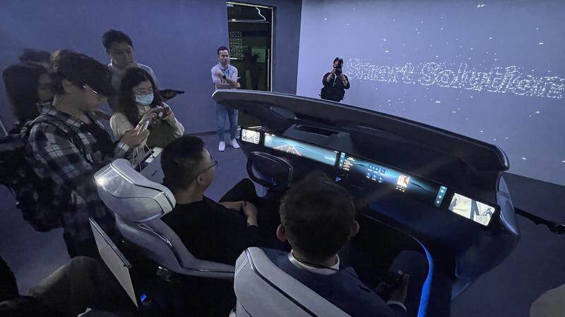2023年4月18日至27日,在2023上海國(guó)際車展上媒體記者和客商體驗(yàn)德賽西威Smart Solution 2.0智慧出行解決方案。