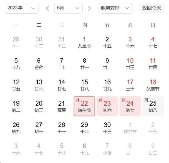 6月22日至24日放假調(diào)休
