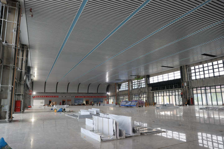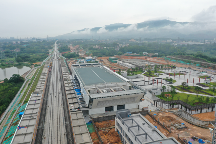 截至5月26日,羅浮山站站房主體結(jié)構(gòu)及屋面全部完成,內(nèi)裝完成97%,外幕墻完成97%。站臺(tái)主體結(jié)構(gòu)全部完成,站臺(tái)鋪裝完成98%,雨棚仿清水涂料完成98%。目前正在進(jìn)行站房外部落客通道的石材鋪貼,閘機(jī)已經(jīng)運(yùn)抵場內(nèi),所有工程計(jì)劃6月底完成。