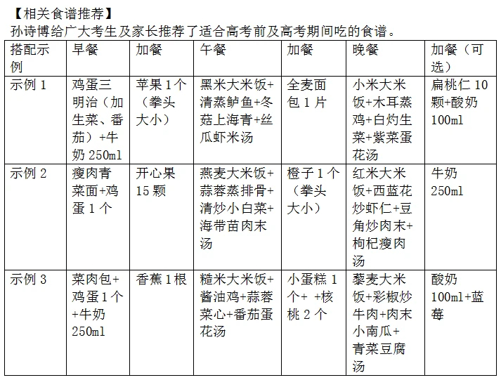 那么高考前和高考期間吃什么?怎么吃?怎樣給考生合理地搭配營(yíng)養(yǎng),才能保證考生以最佳的狀態(tài)高考呢?惠州市中心人民醫(yī)院營(yíng)養(yǎng)科副主任孫詩(shī)博給大家送來(lái)高考營(yíng)養(yǎng)秘籍。
