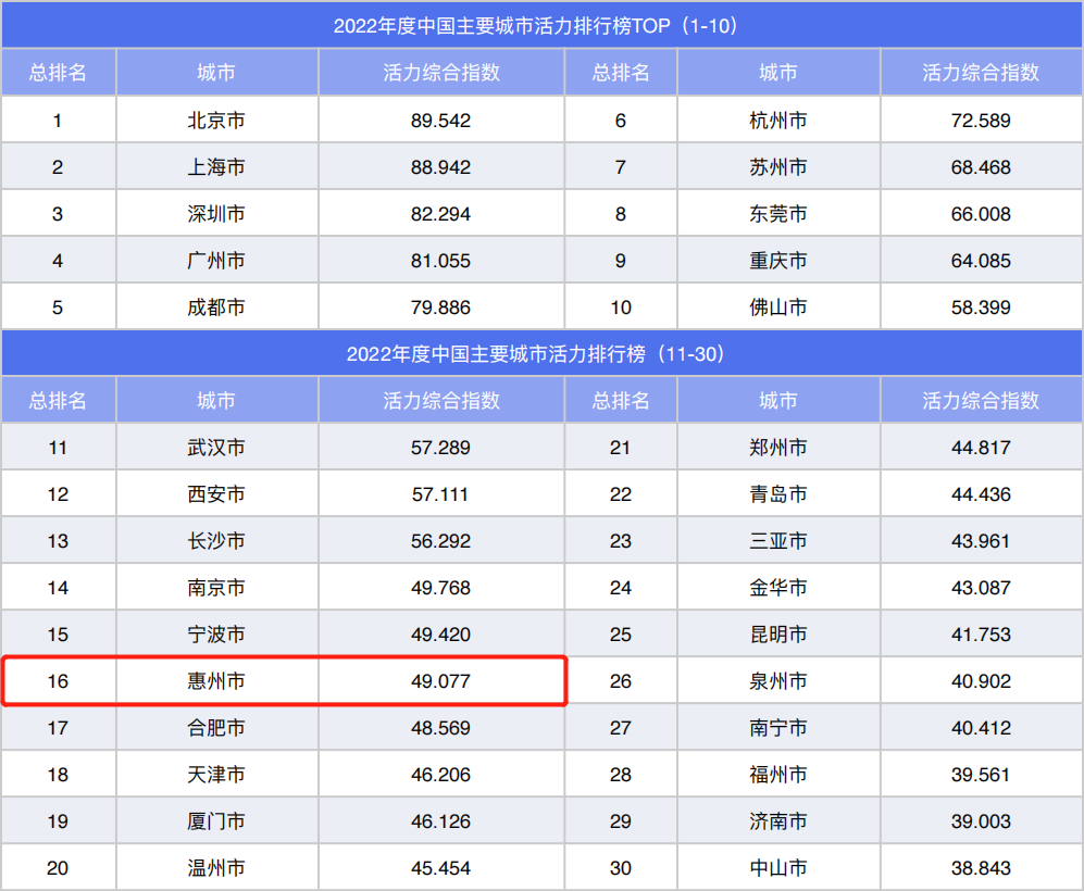 惠州以49.077的活力綜合指數(shù)
