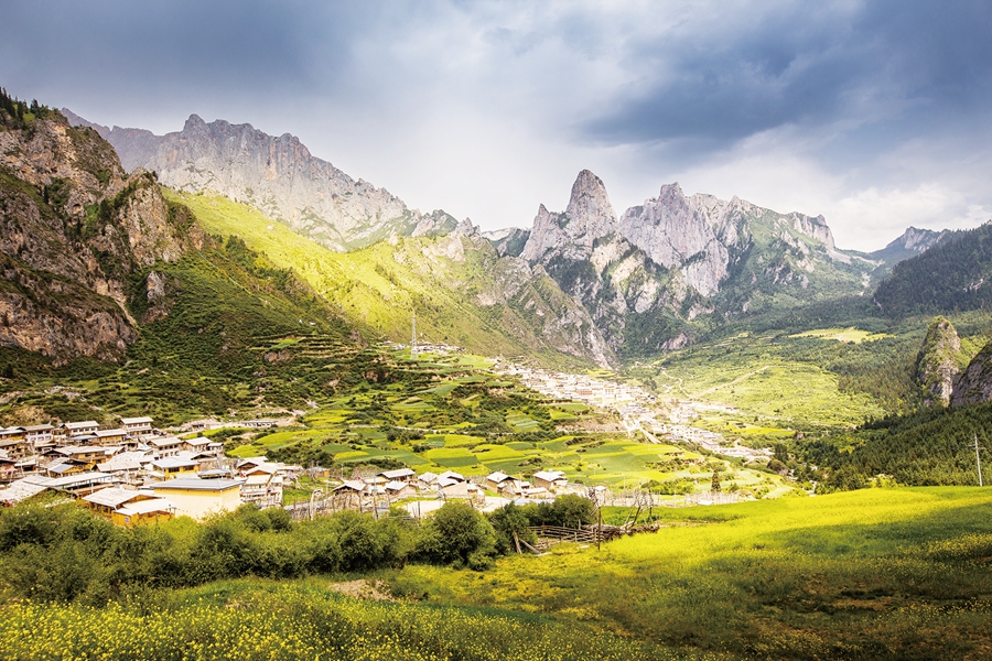 1925年美籍植物學(xué)家洛克三度來到扎尕那,留下評價:“我生平未見過如此絢麗的景色,如果《創(chuàng)世紀(jì)》的作者曾看見這里的美景,將會把亞當(dāng)和夏娃的誕生地放在這里。”這兒有巨石嶙峋的山峰、幽深狹長的峽谷、原始森林,還有第四紀(jì)冰川地貌遺跡,寧靜而美好。