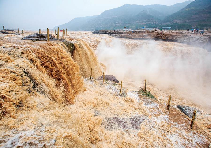 國家5A級旅游景區(qū),東瀕山西省臨汾市吉縣壺口鎮(zhèn),西臨陜西省延安市宜川縣壺口鎮(zhèn),為兩省共有旅游景區(qū)。它距離黃河源頭不遠(yuǎn),高差50米,寬100米,水量巨大,是黃河文明的象征之一。壺口瀑布的名字來源于瀑布形態(tài),瀑布如壺口般呈狹窄的峽谷,水流湍急,波濤洶涌,氣勢磅礴。周圍山巒環(huán)抱,景色十分壯觀。