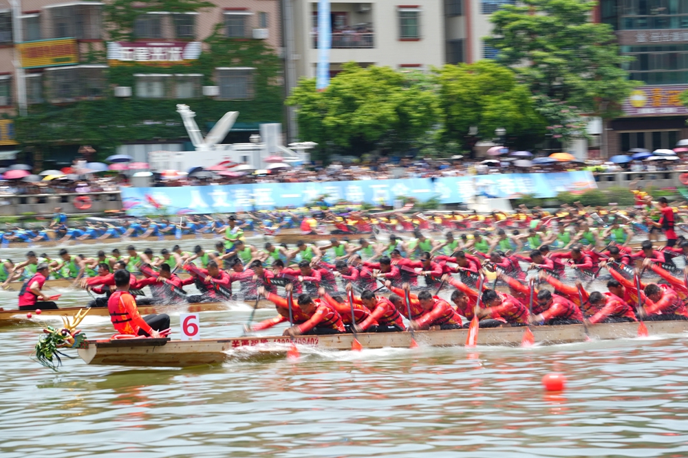 啟動儀式后,激動人心的粵港澳大灣區(qū)(廣東)龍舟邀請賽暨東莞龍舟錦標(biāo)賽在東莞沙田水道舉行。來自粵港澳的18支男女混合龍舟隊(duì),東莞水鄉(xiāng)沿海鎮(zhèn)街的10支男子傳統(tǒng)龍舟隊(duì),以及12支沙田男、女子組龍舟隊(duì)同江競渡,全面展示龍舟文化的獨(dú)特魅力,凸顯“人文灣區(qū),一水同舟;萬眾一心,賽龍奪錦”的人文精神,彰顯大灣區(qū)一家親,攜手共進(jìn)、奮勇向前的高質(zhì)量發(fā)展態(tài)勢。