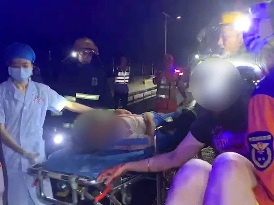 根據(jù)現(xiàn)場(chǎng)情況,消防救援人員立即做好現(xiàn)場(chǎng)安全警戒,同時(shí)安撫小男孩情緒,使用液壓破拆工具將小車后排車門擴(kuò)張開,順利將受傷小孩救出。緊接著對(duì)主駕車門、后排車門進(jìn)行剪切擴(kuò)張,及時(shí)打開救援空間將被困女子救出,并交現(xiàn)場(chǎng)醫(yī)護(hù)人員送醫(yī)院救治。