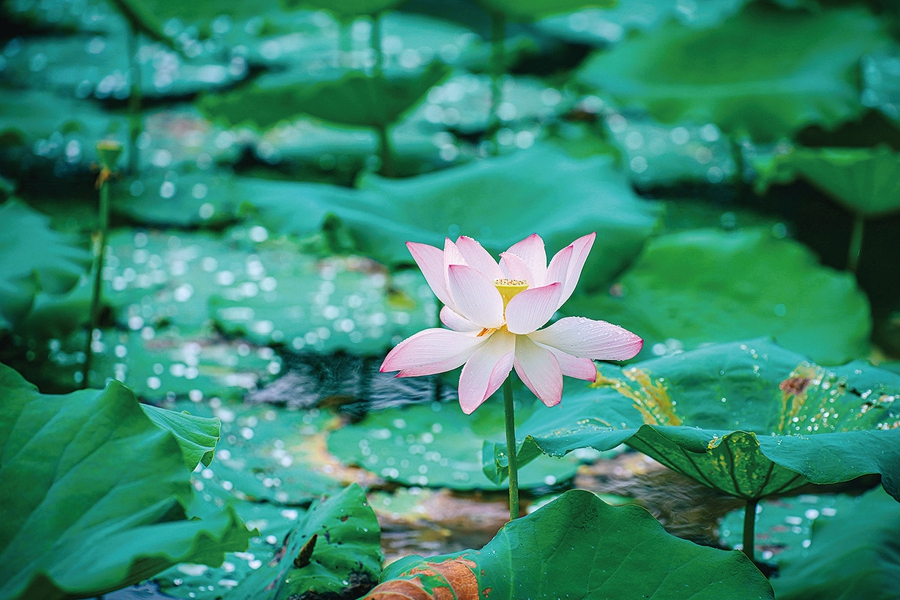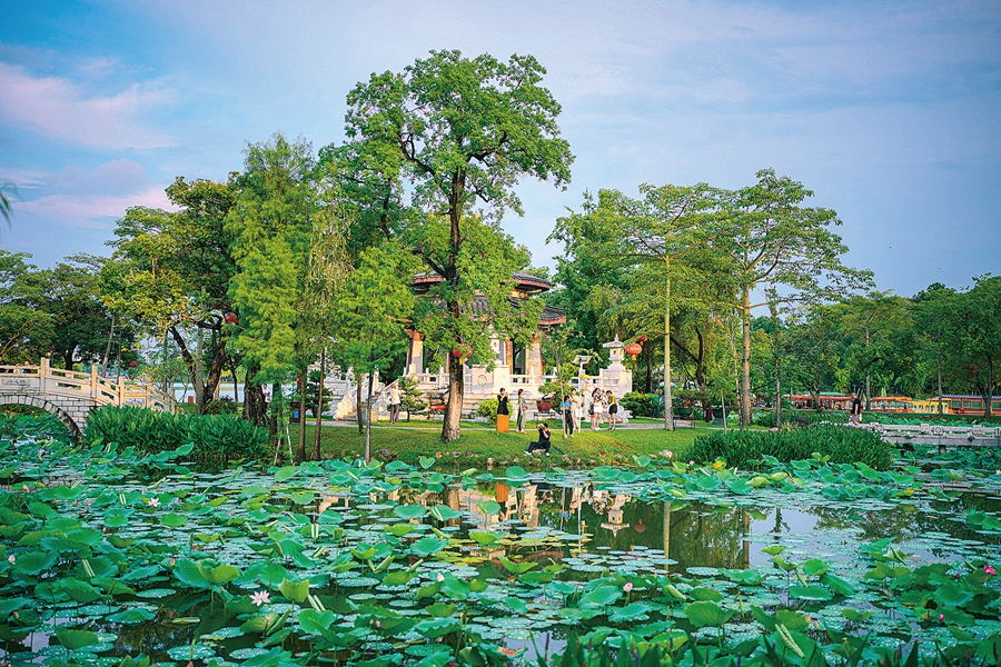 賞荷的市民也成了園內(nèi)的風(fēng)景。