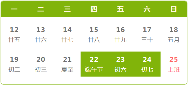 2023年6月22日(星期四)至6月24日(星期六)放假調(diào)休,共3天。6月25日(星期日)上班。