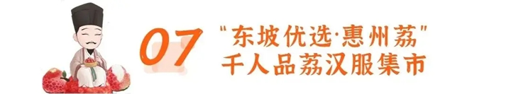 活動(dòng)內(nèi)容:圍繞“佳人相見一千年”主題,以東坡荔枝、東坡潮玩、東坡茶飲、文創(chuàng)雪糕為賣點(diǎn),與惠州美食小吃相結(jié)合,舉辦“東坡優(yōu)選·惠州荔”千人品荔漢服集市,通過設(shè)置網(wǎng)紅打卡點(diǎn)、定點(diǎn)表演、漢服專業(yè)形象扮演互動(dòng)等節(jié)目,吸引市民及游客參與。