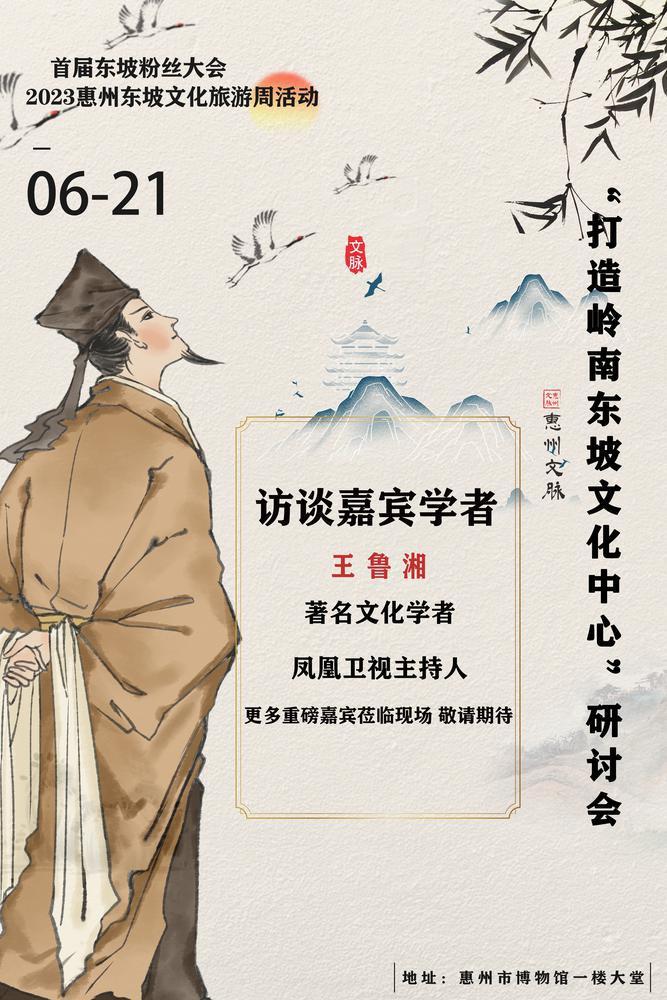 6月21日,“打造嶺南東坡文化中心”研討會(huì)將在惠州市博物館拉開(kāi)帷幕。此次活動(dòng)大咖云集,特別邀請(qǐng)了鳳凰衛(wèi)視著名主持人王魯湘演講并擔(dān)任學(xué)術(shù)主持,與國(guó)內(nèi)蘇學(xué)專(zhuān)家坐而論道,共同助力傳播東坡文化、講好東坡故事,敬請(qǐng)期待!