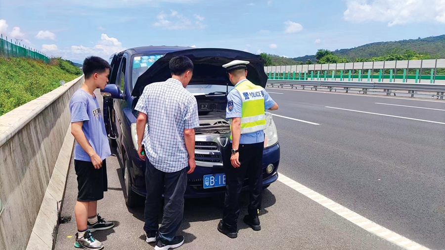 惠州交警疏堵保暢的同時,不忘為群眾排憂解難,送上節(jié)日溫暖。6月24日下午,惠東縣公安局交警大隊在惠東鐵涌路段開展交通疏導(dǎo)時,接到群眾求助稱,其小孩腿部受傷,急需送往醫(yī)院救治,希望交警提供幫助。