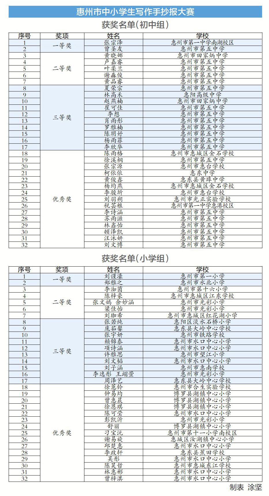 惠州市中小學(xué)生寫作手抄報大賽獲獎名單出爐