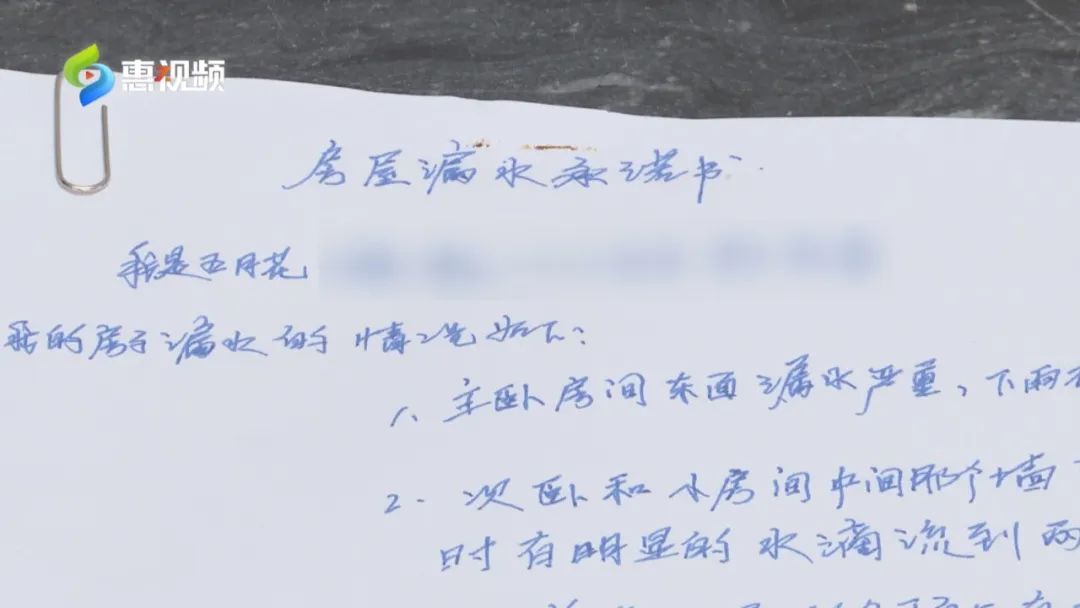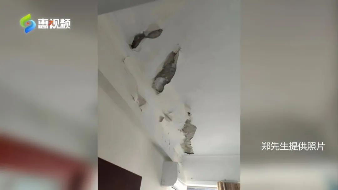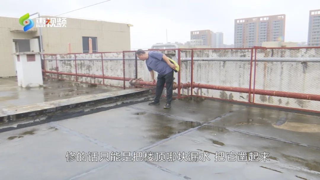 “師傅說補上也沒用,上面(漏水)不給你修,你補灰沒用。修的話把樓頂漏水部分把它鑿起來,中間給打上防水材料,搞完然后把它封上才可以。我們業(yè)主自己搞不了。”
