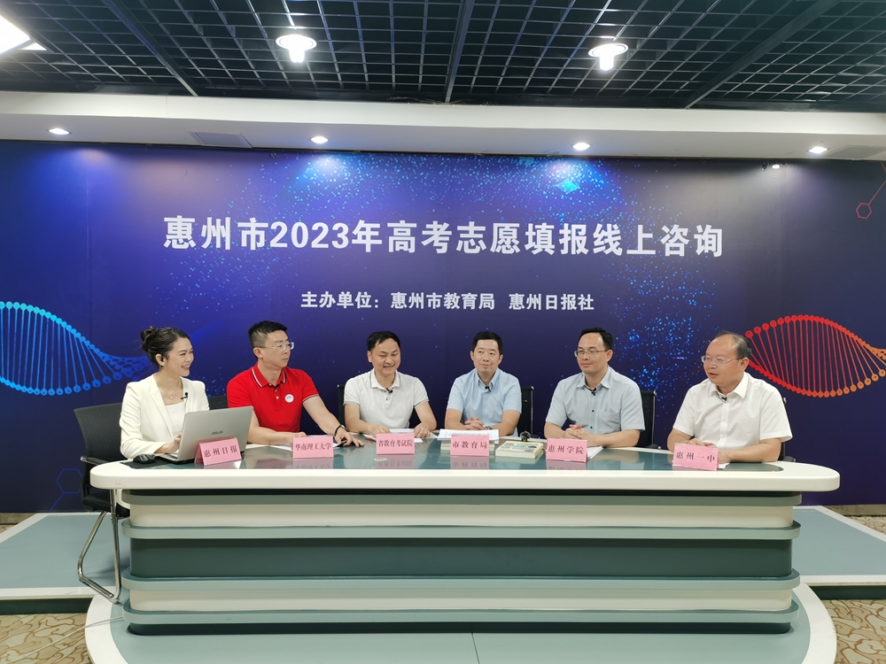 今年廣東高考已經(jīng)放榜,6月28日至7月4日是考生們填報志愿的時間。如何合理填報志愿,提高錄取機會考入理想的大學?6月27日晚,“惠州市2023年高考志愿填報線上咨詢”交流活動在惠州日報社舉行,來自省教育考試院、惠州市教育局教育考試中心,以及華南理工大學、惠州學院、惠州市第一中學的專家,在線為考生和家長答疑解惑,提供指導。惠州日報官方客戶端惠州頭條,以及惠州日報“小惠趣學”視頻號對活動進行視頻和圖文直播,吸引了38.4萬人次觀看。