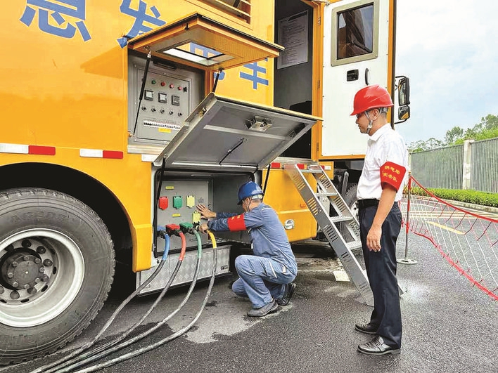 惠州供電局工作人員在現(xiàn)場檢查供電設(shè)備。