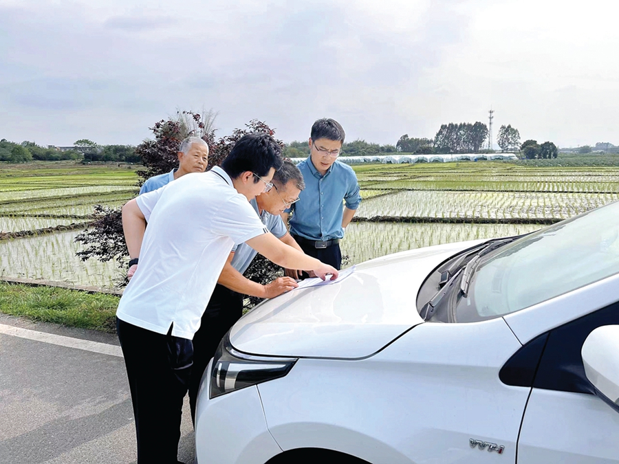 市紀檢監(jiān)察系統(tǒng)工作人員深入田間地頭開展監(jiān)督檢查。