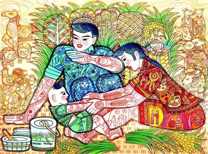 龍門(mén)農(nóng)民畫(huà)畫(huà)家黃偉平、劉少夏作品《豐樂(lè)年》,展現(xiàn)藍(lán)田嘗新節(jié)場(chǎng)景。惠州日?qǐng)?bào)資料圖片