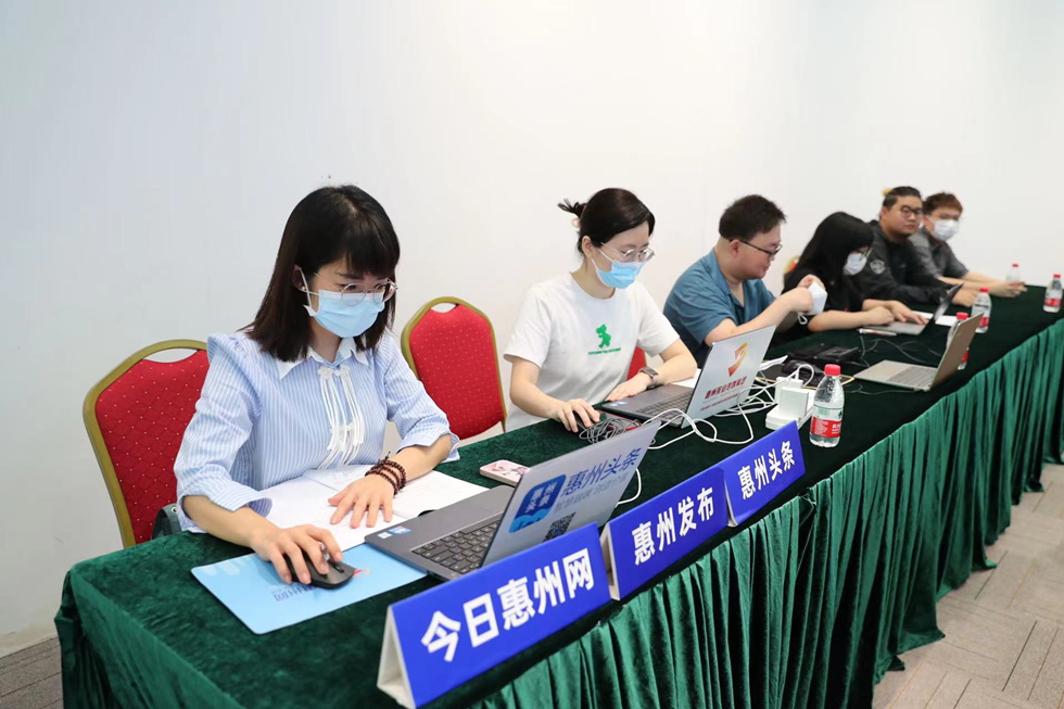 今日惠州網(wǎng)、惠州頭條APP對新聞發(fā)布會進(jìn)行現(xiàn)場直播。新聞發(fā)布會現(xiàn)場。惠州日報(bào)記者楊建業(yè) 攝