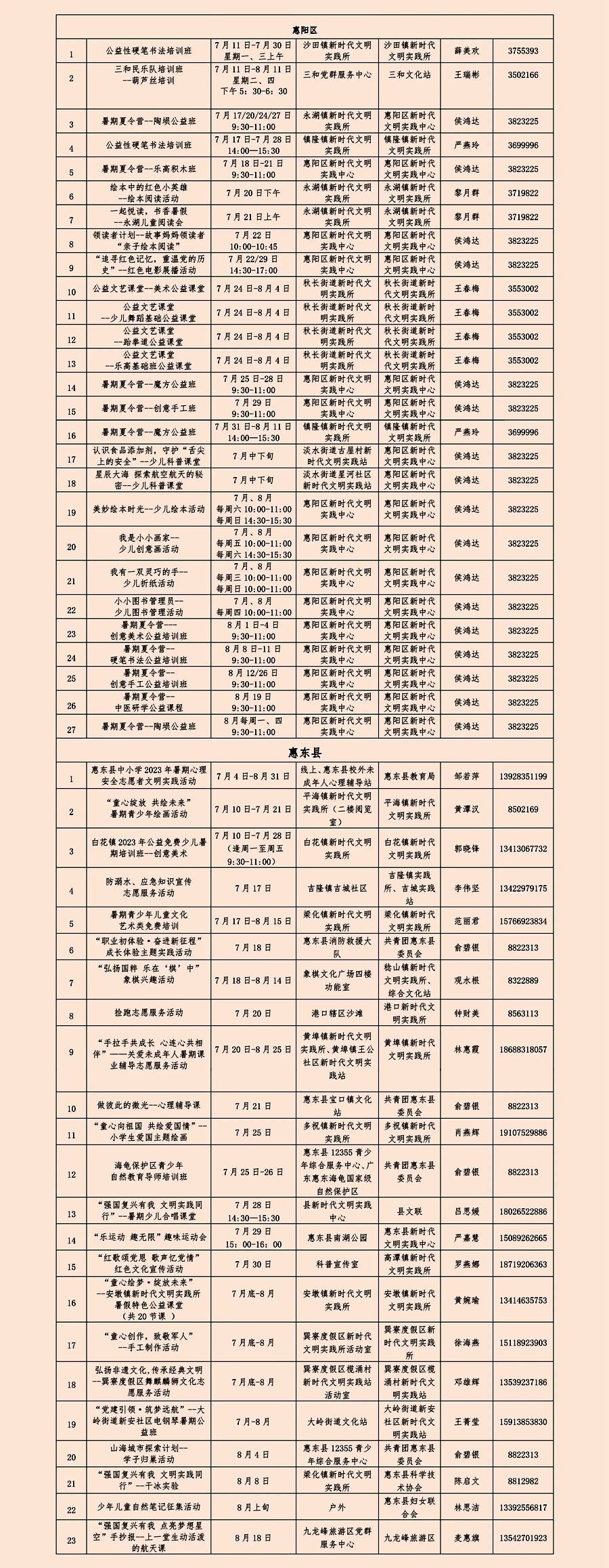 惠州日?qǐng)?bào)訊 (記者龔妍 通訊員梁玉丹)218項(xiàng)文明實(shí)踐活動(dòng)讓你的暑假生活有“知”有“味”。7月16日,記者從市委宣傳部獲悉,今年暑假,我市將以各新時(shí)代文明實(shí)踐中心、所、站為依托,精準(zhǔn)對(duì)接群眾需求,堅(jiān)持“公益+志愿”理念,用活室內(nèi)與室外陣地,圍繞公益撿跑、文化藝術(shù)、體育運(yùn)動(dòng)、勞動(dòng)實(shí)踐等主題,在全市范圍內(nèi)開展218項(xiàng)主題鮮明、內(nèi)容豐富的新時(shí)代文明實(shí)踐活動(dòng),進(jìn)一步豐富廣大市民朋友的暑假生活。