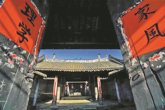 江廈譚氏宗祠大門貼著“家風(fēng) 理學(xué)” 黃克鋒 攝