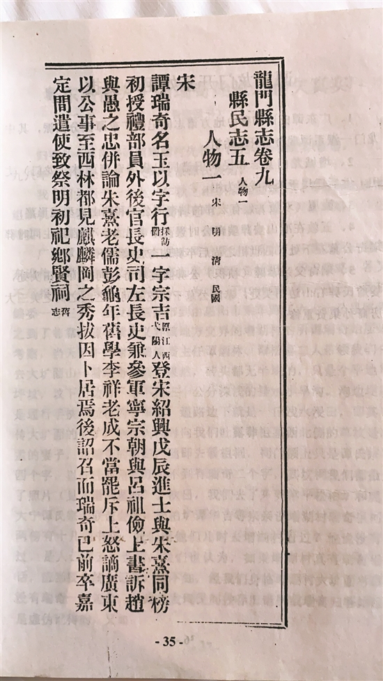 《龍門縣志》記載了龍門譚氏始祖譚瑞奇的生平事跡