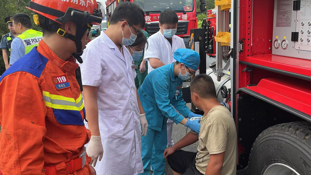 經(jīng)過近半小時(shí)的緊張救援,消防員成功將一名男子救出,并將其移交現(xiàn)場醫(yī)護(hù)人員進(jìn)行救治。