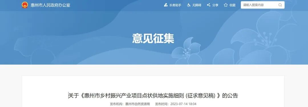 《實(shí)施細(xì)則》(征求意見稿)在惠州市政府官網(wǎng)公開征求意見征集截止日期為2023年8月13日。