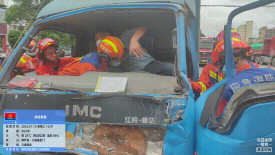 經(jīng)過約10分鐘的緊急救援,司機(jī)被成功救出。