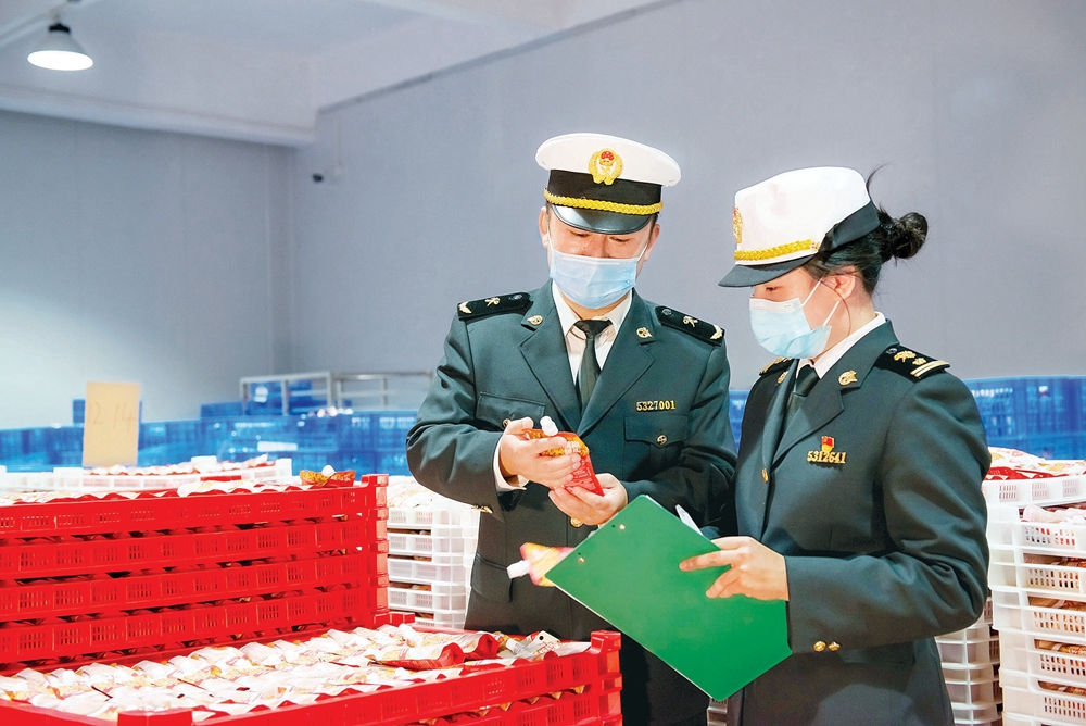 惠州海關(guān)關(guān)員檢查罐頭產(chǎn)品。